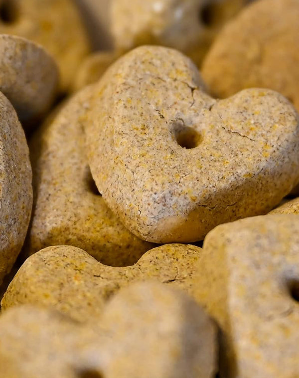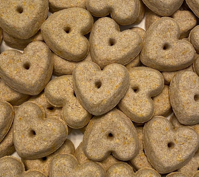 NEW 10oz. box of heart shaped crunchy treats. (Same recipe in a NEW smaller size for smaller pups and or if you just want smaller portions for your pup.)